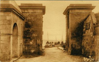 | Keywords: Île d' Aix - La porte du port.jpg fr La porte du port de l'Île d'Aix avec trois bateaux en arrière plan Île d'Aix Charente Maritime France Carte postale numérisée Editions Artistiques Raymond Bergerin La Rochelle 1933 Oeuvre d'entreprise personne morale qui n'existe plus PD-old Fortifications in l'Île d'Aix |