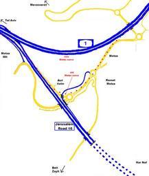 Keywords: ILjunction-motza-prelim.PNG en New configuration of Motza Interchange of Israel Highway 1 and Jerusalem Road 16 2013-01-14 11 05 08 own Atefrat cc-zero Uploaded with UploadWizard Highway maps of Israel