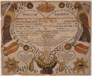 | Keywords: Illustrated family record (Fraktur) found in Revolutionary War Pension and Bounty-Land-Warrant Application File... - NARA - 300195.jpg Scope and content Illustrated family record in German Birth and Baptismal record by F Krebs no date hand-colored with large birds General notes Original Located at TR3280 300195 Local identifier Department of the Interior Bureau of Pensions 1849 - 1930 Most Recent <br /> War Department Office of the Secretary 1789 - 09/18/1947 Predecessor <br /> War Department Military Bounty Lands and Pension Branch ca 1810 - 1815 Predecessor Archives I Reference Section Textual Archives Services Division NWCT1R National Archives Building 7th and Pennsylvania Avenue NW Washington DC 20408 other date circa 1800 1900 Record group Record Group 15 Records of the Department of Veterans Affairs 1773 - 2007 Record group ARC 344 Case Files of Pension and Bounty-Land Warrant Applications Based on Revolutionary War Service compiled ca 1800 - ca 1912 documenting the period ca 1775 - ca 1900 Series ARC 300022 File unit Revolutionary War Pension and Bounty-Land-Warrant Application File W3079 for Philip Frey Pennsylvania ca 1800 - ca 1900 File unit ARC 300194 Variant control numbers NAIL Control Number NWCTB-15-NM22E19-W3079-SLIDE18<br /> NAIL Control Number NWDT1-15-NM22E19-W3079-SLIDE18 Other versions <gallery> File Illustrated_family_record_ Fraktur _found_in_Revolutionary_War_Pension_and_Bounty-Land-Warrant_Application_File _-_NARA_-_300195 tif tif File Illustrated_family_record_ Fraktur _found_in_Revolutionary_War_Pension_and_Bounty-Land-Warrant_Application_File _-_NARA_-_300195 jpg jpg </gallery> NARA-cooperation PD-USGov Family historical documents of the United States Fraktur Documents in German |