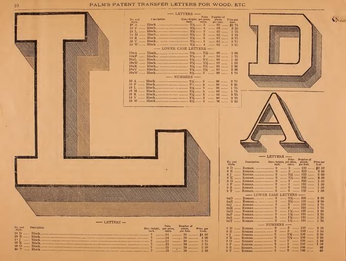 MAKE A MEME View Large Image Public Domain Book:Illustrated sample book & price list of Palm's patent transfer letters ornaments & trade designs for signs, wagons, cars, machines, etc manufactured by the Palm Letter Co Published 1901 in Cincinnati . ...