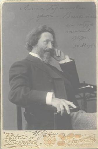 Keywords: Ilya Efimovich Repin in the Photographers studio Rentz and Schrader 1.jpg en Ilya Efimovich Repin 18441-1930 Protruding Russian artist Ilya Efimovich Repin was born in 1844 in a Chuguev in family of the retired soldier Initial skills of painting has received from чугуевских icon painters In 1863 has acted in the Petersburg Academy of arts and in 1871 has finished it Was teacher the professor - the head of a workshop and the rector 1898-1899 г г Academies of arts at the same time taught at school-workshop Tenishevoj; among its disciples M Kustodiev I E Grabar etc gave also private lessons of Century to A Serov The author of such famous pictures Barge haulers on Volga Ivan Groznyj and its son Ivan as well as portraits of Item of A Strepetovoj N I Pirogova I N Kramskogo I S Turgeneva Photographer's studio Rentz and Schrader St -Petersburg Morskaya str 30 ru Илья Ефимович Репин 1844 -1930 г г Выдающийся усский художник Илья Ефимович Репин одился в 1844 году в г Чугуеве на Ха ьковщине в семье отставного солдата Пе воначальные навыки живописи получил от чугуевских иконописцев В 1863 году поступил в Пете бу гскую Академию художеств и в 1871 году закончил ее Был п еподователем затем п офессо ом - уководителем масте ской и екто ом 1898-1899 г г Академии художеств однов еменно п еподавал в школе-масте ской Тенишевой; с еди его учеников Б Кустодиев И Э Г аба ь и т д давал также частные у оки В А Се ову Авто таких знаменитых ка тин Бу лаки на Волге Письмо запо ожцев ту ецкому султану Иван Г озный и его сын Иван а также по т еты П А Ст епетовой И Пи огова П Т етьякова И К амского И С Ту генева Последние годы жизни п овел в местечке Куоккала на Ка ельском пе ешейке ныне пос Репино Ленинг адской области Фотоателье Rentz Schrader ул Большая о ская 30 de Ilya Efimovich Repin 1844-1930 г г ist Der ausstellende russische Künstler Ilya Efimovich Repin in 1844 an geboren worden in der Familie des verabschiedeten Soldaten Die ursprünglichen Fertigkeiten der Malerei hat von чугуевских der Ikonenmaler bekommen In 1863 hat in Die Petersburger Akademie der Kunste gehandelt und in 1871 hat sie beendet War Lehrer dann dem Professor - ein Leiter der Werkstatt und den Rektor 1898-1899 г г die Akademien der Kunste lehrte in der Schule - Werkstatt Tenishevoj gleichzeitig; unter seinen Schülern B M Kustodiev I E Grabar' usw Gab auch die privaten Stunden V A Serovus Der Autor solcher berühmten Bilder 'Бу лаки auf Wolga ' ' Iwan Groznyj und sein Sohn Iwan ' und auch die Porträts P A Strepetovojs N I Pirogova P M Tret'jakova I N Kramskogo I S Turgeneva Das Fotoatelier ' Rentz und Schrader ' Sankt Petersburg http //fotoshrader ru/wp-content/gallery/izvestnye-lyudi-rossii/erepin_0 jpg Ф ид их Людвиг Ге манович Ш аде 1900-е годы PD-old Ilya Yefimovich Repin in photographs Photostudio of A Renz F Schrader