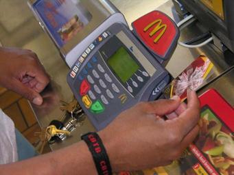 | Keywords: I'm loving it -- debit card at the Guantanamo McDonalds.jpg en 'I'm Lovin It' ” HM1 FMF Fred Turner swipes his gift card in McDonald's new card machine April 4 The new machine now allows customers to use debit credit or gift cards to purchase food https //www cnic navy mil/navycni/groups/public/ pub/ southe/ guantanamobay/documents/document/cnic_048727 pdf MC2 Honey Nixon 2007-04-06 PD-USGov-Military-Navy GFDL Cc-by-sa-3 0-migrated McDonald's restaurants in Cuba Credit card terminals McDonald's restaurant at the Guantanamo Bay Naval Base Debit cards Magstripe card reader VeriFone McDonald's terminals |