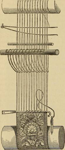| Keywords: bookid:tapestry00cham bookidtapestry00cham bookyear:1878 bookyear1878 bookdecade:1870 bookdecade1870 bookcentury:1800 bookcentury1800 bookauthor:champeaux__alfred_de__1833_1903 bookauthorchampeauxalfredde18331903 bookauthor:sketchley__richard_foster__mrs bookauthorsketchleyrichardfostermrs booksubject:tapestry booksubjecttapestry bookpublisher:_london__pub__for_the_committee_of_council_on_education_by_chapman_and_hall bookpublisherlondonpubforthecommitteeofcounciloneducationbychapmanandhall bookcontributor:smithsonian_libraries bookcontributorsmithsonianlibraries booksponsor:smithsonian_libraries booksponsorsmithsonianlibraries bookleafnumber:19 bookleafnumber19 bookcollection:smithsonian bookcollectionsmithsonian monochrome drawing sketch text bookid:tapestry00cham bookidtapestry00cham bookyear:1878 bookyear1878 bookdecade:1870 bookdecade1870 bookcentury:1800 bookcentury1800 bookauthor:champeaux__alfred_de__1833_1903 bookauthorchampeauxalfredde18331903 bookauthor:sketchley__richard_foster__mrs bookauthorsketchleyrichardfostermrs booksubject:tapestry booksubjecttapestry bookpublisher:_london__pub__for_the_committee_of_council_on_education_by_chapman_and_hall bookpublisherlondonpubforthecommitteeofcounciloneducationbychapmanandhall bookcontributor:smithsonian_libraries bookcontributorsmithsonianlibraries booksponsor:smithsonian_libraries booksponsorsmithsonianlibraries bookleafnumber:19 bookleafnumber19 bookcollection:smithsonian bookcollectionsmithsonian monochrome drawing sketch text Identifier: tapestry00cham Title: Tapestry Year: 1878 (1870s) Authors: Champeaux, Alfred de, 1833-1903 Sketchley, Richard Foster, Mrs Subjects: Tapestry Publisher: [London] Pub. for the Committee of Council on Education by Chapman and Hall Contributing Library: Smithsonian Libraries Digitizing Sponsor: Smithsonian Libraries View Book Page: Book Viewer About This Book: Catalog Entry View All Images: All Images From Book Click here to view book online to see this illustration in context in a browseable online version of this book. Text Appearing Before Image: on the front of the warpa ring the diameter of which is according to the height of the TAPESTRY. pile; a round wire, sharp at one end, is then passed through thisring or loop, and a row of rings is formed on it by the repetition of the stitch. By draw-ing the wire from left toright all these loops arecut, and the pile isformed. When a rowof stitches is thus com-pleted, the workmanbinds them by meansof a strong hempenthread thrown betweenthe two leaves of thewarp, and placed abovethe stitches. He thenintersects the threads ofthe warp by anotherhempen thread, formingthe weft; and to do thathe advances, by meansof the coats, the threadsthat are behind ; hepasses the woof betweenthe two rows of threads,and allows the hinderones to resume theirformer place. In thismanner each of thestitches is, as it were,linked together. Thisbeing done, he strikesthe stitches and thehempen threads with the comb, and these latter are thus forcedinside the fabric so as to be invisible. Then the clipping or Text Appearing After Image: MODE OF MANUFACTURING THE CARPETS OF THESAVONNERIE AUX GOBELINS. TAPESTRY. 7 •shaving of the carpet takes place, which is necessary from theunequal length of the ends of wool left in cutting the loops of thepile. This operation requires much precision on the part of theworkman, and has an important bearing on the beauty of thecarpet. The productions of the Savonnerie being generally largerthan the other pieces of Gobelins tapestry, the looms in whichthey are made are also larger, and allow of several workmenbeing engaged at the same time, thereby accelerating the progressof the work. Low-warp {basse In the low-warp loom, which is that generallylust) looms. use(j ^y ^ weaverj the cylinders, which are placed horizontally, are inserted in two wooden cheeks (jumelles), whichare supported by uprights, as in the high-warp loom. Round oneof these cylinders is placed the warp, and the web as it progressesis rolled on the second, in the same way as in high-warp weaving.The coats are supporte Note About Images Please note that these images are extracted from scanned page images that may have been digitally enhanced for readability - coloration and appearance of these illustrations may not perfectly resemble the original work. Identifier: tapestry00cham Title: Tapestry Year: 1878 (1870s) Authors: Champeaux, Alfred de, 1833-1903 Sketchley, Richard Foster, Mrs Subjects: Tapestry Publisher: [London] Pub. for the Committee of Council on Education by Chapman and Hall Contributing Library: Smithsonian Libraries Digitizing Sponsor: Smithsonian Libraries View Book Page: Book Viewer About This Book: Catalog Entry View All Images: All Images From Book Click here to view book online to see this illustration in context in a browseable online version of this book. Text Appearing Before Image: on the front of the warpa ring the diameter of which is according to the height of the TAPESTRY. pile; a round wire, sharp at one end, is then passed through thisring or loop, and a row of rings is formed on it by the repetition of the stitch. By draw-ing the wire from left toright all these loops arecut, and the pile isformed. When a rowof stitches is thus com-pleted, the workmanbinds them by meansof a strong hempenthread thrown betweenthe two leaves of thewarp, and placed abovethe stitches. He thenintersects the threads ofthe warp by anotherhempen thread, formingthe weft; and to do thathe advances, by meansof the coats, the threadsthat are behind ; hepasses the woof betweenthe two rows of threads,and allows the hinderones to resume theirformer place. In thismanner each of thestitches is, as it were,linked together. Thisbeing done, he strikesthe stitches and thehempen threads with the comb, and these latter are thus forcedinside the fabric so as to be invisible. Then the clipping or Text Appearing After Image: MODE OF MANUFACTURING THE CARPETS OF THESAVONNERIE AUX GOB