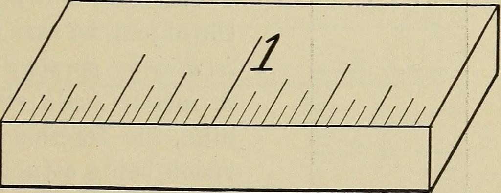 | Keywords: bookid:laboratoryexerc00alle bookidlaboratoryexerc00alle bookyear:1892 bookyear1892 bookdecade:1890 bookdecade1890 bookcentury:1800 bookcentury1800 bookauthor:allen__charles_ricketson__1862___from_old_catalog_ bookauthorallencharlesricketson1862fromoldcatalog booksubject:physics booksubjectphysics bookpublisher:new_york__h__holt_and_company bookpublishernewyorkhholtandcompany bookcontributor:the_library_of_congress bookcontributorthelibraryofcongress booksponsor:the_library_of_congress booksponsorthelibraryofcongress bookleafnumber:72 bookleafnumber72 bookcollection:library_of_congress bookcollectionlibraryofcongress bookcollection:americana bookcollectionamericana monochrome bookid:laboratoryexerc00alle bookidlaboratoryexerc00alle bookyear:1892 bookyear1892 bookdecade:1890 bookdecade1890 bookcentury:1800 bookcentury1800 bookauthor:allen__charles_ricketson__1862___from_old_catalog_ bookauthorallencharlesricketson1862fromoldcatalog booksubject:physics booksubjectphysics bookpublisher:new_york__h__holt_and_company bookpublishernewyorkhholtandcompany bookcontributor:the_library_of_congress bookcontributorthelibraryofcongress booksponsor:the_library_of_congress booksponsorthelibraryofcongress bookleafnumber:72 bookleafnumber72 bookcollection:library_of_congress bookcollectionlibraryofcongress bookcollection:americana bookcollectionamericana monochrome Identifier: laboratoryexerc00alle Title: Laboratory exercises in elementary physics Year: 1892 (1890s) Authors: Allen, Charles Ricketson, 1862- [from old catalog] Subjects: Physics Publisher: New York, H. Holt and company Contributing Library: The Library of Congress Digitizing Sponsor: The Library of Congress View Book Page: Book Viewer About This Book: Catalog Entry View All Images: All Images From Book Click here to view book online to see this illustration in context in a browseable online version of this book. Text Appearing Before Image: eter, cu. cm. It must be remembered that in surface measurementthe units go by the square of 10, and in cubic measure bythe cube of 10. Thus there are 1002 or 10,000 sq. cm. in1 sq. m., and 1003 or 1,000,000 cu. cm. in a cu. m. DETERMINATION OF LENGTH. Scales.—The English Scale gives results in inches, andis shown as commonly arranged in Fig. 38. The longnumbered linesmark inches; theshorter lines, half-inches; the stillshorter, quarter -inches ; and theshortest, eighths. fig. 38. The results are here expressed in inches and decimals ofan inch, not in vulgar fractions; as 0.125, instead of j,or 2.375 in. for 2f in. Yard-sticks are used in laboratories.* The usual form of the Metric Scale is shown in Fig. 39.The long lines, as act, mark decimeters; the shorter num-bered lines, as bb, centimeters; the still shorter, cc, 0.5 cm.,or 5 millimeters; the shortest lines, millimeters. Readings *In some forms of meter-slicks there is an inch-scale on one side.Do not use these for yard-sticks. Text Appearing After Image: 60 MENSURATION. are usually expressed in centimeters and decimals of a cen-timeter. For example, the scale to the line AB reads, inFig. 39 (from right to left), 59 cm. plus 3 mm.; this wouldbe recorded 59.30 cm. Meters areused for distances of over 100 cm.When the figures on scales are rightside up, the scale reads from right toleft. This must be remembered ormistakes will happen, as it is naturalto try to read from left to right.Tenths of millimeters should be esti-mated by the eye. Reading Scales.—The scales are car-ried out to the edge of the rod (Figs.40 and 41), and when possible thisedge should be placed against the dis-tance to be measured, as in Fig. 40,where it is desired to measure the dis-tance between the lines aa. Wherethe scale cannot be applied directly tothe object, be sure that the line of sightis always perpendicular to the scale.A metric scale should be read to T\mm., the fraction of a millimeter di-vision being estimated by the eye. Ingeneral, an attempt should b Note About Images Please note that these images are extracted from scanned page images that may have been digitally enhanced for readability - coloration and appearance of these illustrations may not perfectly resemble the original work. Identifier: laboratoryexerc00alle Title: Laboratory exercises in elementary physics Year: 1892 (1890s) Authors: Allen, Charles Ricketson, 1862- [from old catalog] Subjects: Physics Publisher: New York, H. Holt and company Contributing Library: The Library of Congress Digitizing Sponsor: The Library of Congress View Book Page: Book Viewer About This Book: Catalog Entry View All Images: All Images From Book Click here to view book online to see this illustration in context in a browseable online version of this book. Text Appearing Before Image: eter, cu. cm. It must be remembered that in surface measurementthe units go by the square of 10, and in cubic measure bythe cube of 10. Thus there are 1002 or 10,000 sq. cm. in1 sq. m., and 1003 or 1,000,000 cu. cm. in a cu. m. DETERMINATION OF LENGTH. Scales.—The English Scale gives results in inches, andis shown as commonly arranged in Fig. 38. The longnumbered linesmark inches; theshorter lines, half-inches; the stillshorter, quarter -inches ; and theshortest, eighths. fig. 38. The results are here expressed in inches and decimals ofan inch, not in vulgar fractions; as 0.125, instead of j,or 2.375 in. for 2f in. Yard-sticks are used in laboratories.* The usual form of the Metric Scale is shown in Fig. 39.The long lines, as act, mark decimeters; the shorter num-bered lines, as bb, centimeters; the still shorter, cc, 0.5 cm.,or 5 millimeters; the shortest lines, millimeters. Readings *In some forms of meter-slicks there is an inch-scale on one side.Do not use these for yard-sticks. Text Appearing After Image: 60 MENSURATION. are usually expressed in centimeters and decimals of a cen-timeter. For example, the scale to the line AB reads, inFig. 39 (from right to left), 59 cm. plus 3 mm.; this wouldbe recorded 59.30 cm. Meters areus