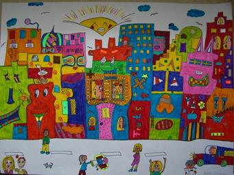 Keywords: image painted colorful color james rizzi inspired students work felt tip pens