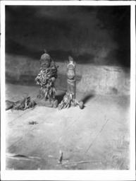 | Keywords: Images of Snake Altar gods at the pueblo of Oraibi, Arizona, ca.1898 (CHS-4648).jpg en <br> Images of Snake Altar gods at the pueblo of Oraibi Arizona ca 1898 Photograph of two images of Snake Altar gods at the pueblo of Oraibi Arizona ca 1898 The idols are made of clay or wood shaped into human-like figures A small pile of pebbles can be seen in the left foreground while a small pile of items can be seen at left The figures sit on a wood floor inside Call number CHS-4648 Legacy record ID chs-m16972; USC-1-1-1-13888 Photographer James George Wharton Filename CHS-4648 Coverage date circa 1898 Part of collection California Historical Society Collection 1860-1960 Type images; physical objects Geographic subject city or populated place Oraibi Repository name USC Libraries Special Collections Accession number 4648 Microfiche number 1-170- Archival file chs_Volume97/CHS-4648 tiff Part of subcollection Title Insurance and Trust and C C Pierce Photography Collection 1860-1960 Repository address Doheny Memorial Library Los Angeles CA 90089-0189 Geographic subject country USA Format aacr2 3 photographs glass photonegative photoprints b w ; 22 x 17 cm 21 x 26 cm Rights Digitally reproduced by the USC Digital Library; From the California Historical Society Collection at the University of Southern California Subject adlf tribal areas Project USC Repository email specol usc edu Identifying number unidentified no James-310 Contributing entity California Historical Society Date created circa 1898 Publisher of the digital version University of Southern California Libraries Format aat photographic prints; photographs Geographic subject state Arizona Subject file heading Indians -- Hopi -- Snake Dance Geographic coordinates -110 639717 35 876389; -110 639442 35 876389; -110 639442 35 874722; -110 639717 35 874722; -110 639717 35 876389 Format glass plate negatives Access conditions Send requests to address or e-mail given Phone 213 821-2366; fax 213 740-2343 Geographic subject county Navajo Subject lcsh Indians of North America; Hopi Indians; Rites and ceremonies Subject Hopi Snake Dance Ceremony circa 1898 date created George Wharton James 1858 1923 http //digitallibrary usc edu/cdm/ref/collection/p15799coll65/id/16891 PD-old-70-1923 Images from USC Digital Library uploaded by Fæ Photographs by George Wharton James California Historical Society Collection 1860-1960 Glass plate negatives Oraibi Arizona |
