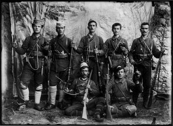 | Keywords: IMARO-band-Kastoria-Papazoglou.jpg Чета на В ОРО от Косту ско Bulgarian IMARO band in the region of Kastoria Λεωνίδας Πα άζογλου Φωτογραφικά ορτραίτα α ό την Καστοριά και την εριοχή της την ερίοδο του ακεδονικού Αγώνα ουσείο Φωτογραφίας Θεσσαλονίκης 2004 date probably summer 1903 terminus ante quem September 3 1903 Leonidas Papazoglou 1872 - 1918 PD-art IMARO Revolutionaries from Bulgaria Pictures by Leonidas Papazoglou Historical images of the Kastoria Prefecture Mannlicher M1895 Mannlicher M1888 Mauser C/96 |