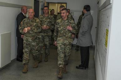 | Keywords: 4id mce baumholder rheinland-pfalz rheinlandpfalz germany de Lt. Col. Matthew J. Sheiffer (right), 4th Infantry Division Mission Command Element Chief of Staff, and Lt. Gen. Kenneth R. Dahl, the commanding general of U.S. Army Installation Management Command, conduct a brief tour in the 4th Infantry Division MCE headquarters at Baumholder, Germany, on Jan. 13, 2016. Dahl took a tour of the facilities and was given an operational brief about the unit’s mission in support of Atlantic Resolve. (Photo by Sgt. 1st Class Jason Epperson, MCE PAO, VIRIN: 160113-A-RK974-416) Lt. Col. Matthew J. Sheiffer (right), 4th Infantry Division Mission Command Element Chief of Staff, and Lt. Gen. Kenneth R. Dahl, the commanding general of U.S. Army Installation Management Command, conduct a brief tour in the 4th Infantry Division MCE headquarters at Baumholder, Germany, on Jan. 13, 2016. Dahl took a tour of the facilities and was given an operational brief about the unit’s mission in support of Atlantic Resolve. (Photo by Sgt. 1st Class Jason Epperson, MCE PAO, VIRIN: 160113-A-RK974-416) |