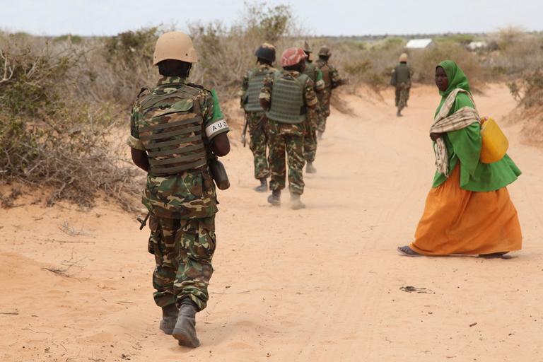 | Keywords: outdoor Burundian soldiers, as part of the African Union Mission in Somalia, patrol around the town of Ragaele in the Middle Shabelle region of Somalia on October 2. The town of Ragaele was liberated from al Shabab militants by the Burundian forces on October 1. AMISOM Photo / Fanah Mohamed Burundian soldiers, as part of the African Union Mission in Somalia, patrol around the town of Ragaele in the Middle Shabelle region of Somalia on October 2. The town of Ragaele was liberated from al Shabab militants by the Burundian forces on October 1. AMISOM Photo / Fanah Mohamed |