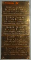 | Keywords: Дети Петра Великого.JPG Б онзовая доска с г ави ованной надписью на стене Пет опавловского собо а own 2003-04-05 Дмит ий ацедонский Macedonsky Original upload log ru wikipedia Shakko CommonsHelper ru wikipedia D0 94 D0 B5 D1 82 D0 B8+ D0 9F D0 B5 D1 82 D1 80 D0 B0+ D0 92 D0 B5 D0 BB D0 B8 D0 BA D0 BE D0 B3 D0 BE JPG 2008-04-03 09 03 Macedonsky 960×1280× 846499 bytes <nowiki> Описание Авто В емя создания Источник </nowiki> Burials at Peter and Paul Cathedral St Petersburg Peter I of Russia's children Natalia Petrovna ImageNote 1 86 116 461 162 628 1201 2 Великая Княжна<br> Екате ина Пет овна<br> Родилась въ оскве 1706 года Декаб я 28го дня<br> Скончалась въ оскве 1708 года Iюля 27го дня ImageNoteEnd 1 ImageNote 2 92 337 445 146 628 1201 2 Великая Княжна<br> аталiя Пет овна<br> Родилась въ СПбу ге 1713 года а та 3го дня<br> Скончалась въ СПбу ге 1715 года ая 27го дня ImageNoteEnd 2 ImageNote 3 70 521 490 158 628 1201 2 Великая Княжна <br> а га ита Пет овна<br> Родилась в СПБу ге 1714 года Сентяб я 3го дня<br> Скончалась в СПБу ге 1715 года Iюля 27го дня ImageNoteEnd 3 ImageNote 4 74 722 500 192 628 1201 2 Великiй Князь<br> Павелъ Пет овичъ<br> Родился въ Везеле 1717 года Янва я 2го дня<br> Скончался въ Везеле 1717 года Янва я 3го дня<br> Пог ебенъ в СПБу ге 1717 года а та 12го дня ImageNoteEnd 4 ImageNote 5 84 958 486 178 628 1201 2 Великая Княжна<br> аталiя Пет овна<br> Родилась въ СПБу ге 1718 года Августа 20го дня<br> Скончалась въ СПБу ге 1725 года а та 4го дня ImageNoteEnd 5 |