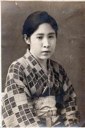 Keywords: とも枝単独.jpg 岩岡とも (明治29年-昭和8年) en Japanese illustrator and Japanese-style painter Iwaoka Tomoe 1896 1933 昭和8年以前 before 1933 own 伊宇湯和仮名 other versions PD-Japan-oldphoto Iwaoka Tomoe Black and white portrait photographs of women of Japan