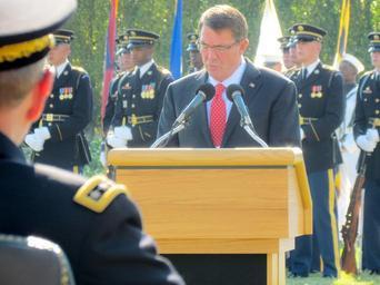 | Keywords: Secretary of Defense Mr. Ash Carter addresses the audience during the National POW/MIA Recognition Day ceremony at the Pentagon River Terrace Parade field Sept 18, 2015. Secretary of Defense Mr. Ash Carter addresses the audience during the National POW/MIA Recognition Day ceremony at the Pentagon River Terrace Parade field Sept 18, 2015. |