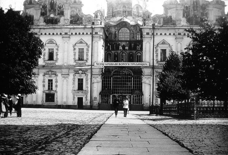 | Keywords: Ченці - криваві вороги трудящих.jpg  en Soviet antireligious propaganda at the entrance to the Dormition Cathedral of the Kyivan Cave Monastery in Kyiv Monks - bloody enemies of the working class uk Совєтська анти елігійна п опаґанда над головним входом до Успенської катед и Києво-Пече ського монасти я Ченці - к иваві во оги т удящих http //sovietera net/articles/articles/15/1930-e sovietera net author s 1930 PD-Ukraine History of Dormition Cathedral of the Kyivan Cave Monastery Exterior of Dormition Cathedral of the Kyivan Cave Monastery Propaganda of the Soviet Union Atheism in the Soviet Union Anti-religious campaign in the Soviet Union |