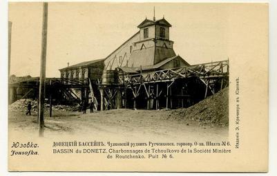 | Keywords: Кречмер. Рутченковское горнопромышленное общество. Чулковский рудник. Шахта 6.jpg Реп одукция до еволюционной отк ытки Рутченковское го ноп омышленное общество Чулковский удник Шахта 6 http //www stamp-coins com/published/publicdata/SHOPSCRIPT/attachments/SC/products_pictures/AZ0688_enl jpg 1904-1909 Creator Krechmer PD-RusEmpire Postcards of Hughesovka by Krechmer Photographs uploaded by Andrew Butko from various sources 1000-1999 px on long side Rutchenkovskoe Mining Company Coal mines in Donetsk Donetsk in the 1900s Proletarskyi District Donetsk Historical photos of Donetsk by alphabet Unidentified year in Donetsk |