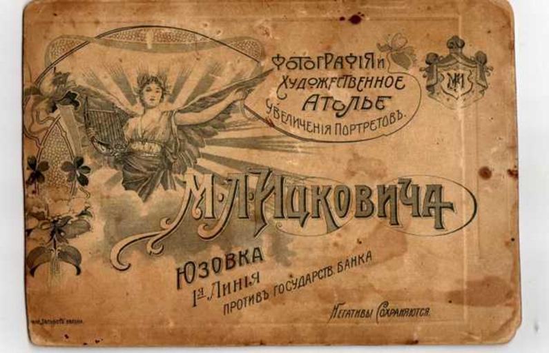 | Keywords: Обратная сторона фото М.Ицковичъ Юзовка.jpg Фотог афия фотоателье Л Ицковича http //molotok ru/item1086612692_foto_m_ickovich_yuzovka html end XIX - begin XX century Фотоателье Л Ицковича PD-RusEmpire Files uploaded by Andrew Butko from various sources Photostudio of Itskovich Donetsk in the unidentified decade Historical non-photos images of Donetsk by alphabet Historical photos of Donetsk by alphabet Images from molotok ru | ||||