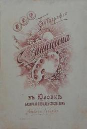 | Keywords: Фотография С. Синицына.jpg Фотог афия С Синицына в Юзовке база ная площадь собственный дом http //infodon org ua/uzovka/610 end XIX - begin XX century фотоателье Синицына PD-RusEmpire Photostudio of Sinitsin Donetsk in the unidentified decade Files uploaded by Andrew Butko from various sources Historical non-photos images of Donetsk by alphabet Images from infodon org ua |