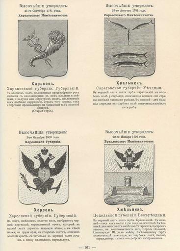 | Keywords: Харьков Хвалынск Херсон Хмельник из Винклера.jpg Official Russian Empire coats of arms Ге бы го одов Российской Импе ии Ха ьков Хвалынск Хе сон Хмельник - с официальными описаниями в Ге бовнике Винкле а П П фон-Винкле Ге бы го одов губе ний областей и посадов Российской Импе ии внесенные в Полное Соб ание законов с 1649 по 1900 год Дозволено цензу ою С -Пете бу г 20 Июля 1899 года Издание книгото говца Ив Ив Иванова С -Пете бу г Типог афия И Комелова П яжка д 3 1899 \ Scanned by Vizu 1781\ 1796\ 1803\ 1899 published П П фон Винкле \ Pavel von Vinkler PD-old PD-RusEmpire PD-RU-exempt coats of arms Coats of arms of Kharkiv Coats of arms of cities in Kharkov Governorate Coats of arms of Saratov Governorate Coats of arms of Kherson Governorate Coats of arms of cities in Podolia Governorate Gerbovnik Vinklera - Pages 161 1781 in the Russian Empire 1796 in the Russian Empire 1803 in the Russian Empire |