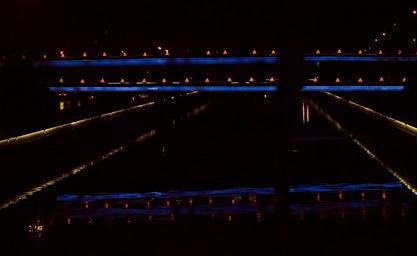Keywords: black background night bridge architecture Reflection of a bridge at night Reflection of a bridge at night