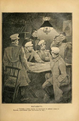 | Keywords: Иллюстрация В. А. Полякова к роману М. Ю. Лермонтова «Герой нашего времени». Фаталист.png Иллюст ация В А Полякова к оману Ю Ле монтова «Ге ой нашего в емени» Фаталист File Ле монтов Ю Полное соб ание сочинений в 2 томах 1900 djvu < 1900 В А Поляков PD-RusEmpire Illustrations by Polyakov to the works of Mikhail Lermontov Images uploaded by Steven Pavlov from various sources | ||||