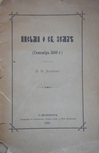 | Keywords: Хитрово В.Н. Письма о Св. Земле. Сентябрь 1898 г. (1898) — Титульный лист.jpg Image page PD-RusEmpire User Senapa/TemplateSenapaLib Literary works by Vasily Khitrovo Books from Russia 1898 Books published in Saint Petersburg Title pages from Russia Title pages uploaded by Steven Pavlov from various sources |