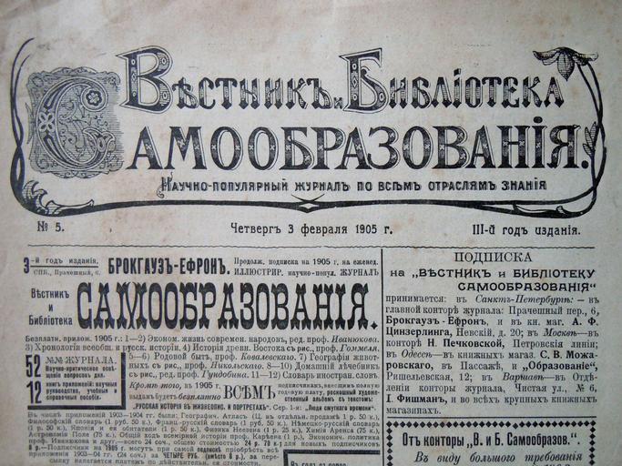 Keywords: Вестник и библиотека самообразования. (1905, №5) — Часть 1-й стр.jpeg ru Вестник и библиотека самооб азования аучно-популя ный жу нал по всем от аслям знания 1905 http //fotki yandex ru/users/tania-1401/album/174416/ various other versions Custom license marker 2014 10 12 PD-RusEmpire Uploaded with UploadWizard Vestnik i biblioteka samoobrazovaniya Title pages uploaded by Steven Pavlov from various sources Title pages from Russia Magazines of Russia 1905 |