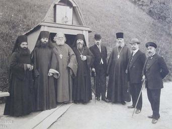 | View Original: | Игумен Валентин, о. Никанор, князь В. Д. Жевахов, горные инженеры С. Г. Коклик, П. Э. Бутенко и скитские монахи, 1914 г.jpg (700x525) | |||