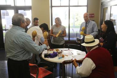 Keywords: IMCOM employees take a brief lunch break to participate and learn about the Caribbean Christmas Tradition called "Parranda."