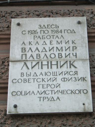 Keywords: Линник мем.доска.JPG ru СПб емо иальная доска на доме где жил и аботал академик Линник В П own Пёт Иванов 2010 Cc-zero Cemetery in Komarovo