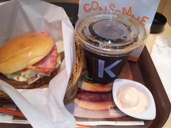 Keywords: とくせんべーこんえっぐ.JPG en BaconEgg Burger by First Kichen ファーストキッチンのベーコンエッグバーガー 自分で撮影 私 2011年5 7日 First-Kitchen Fast food hamburgers Fast food trays Taken with NTT DoCoMo SH01B Cc-zero