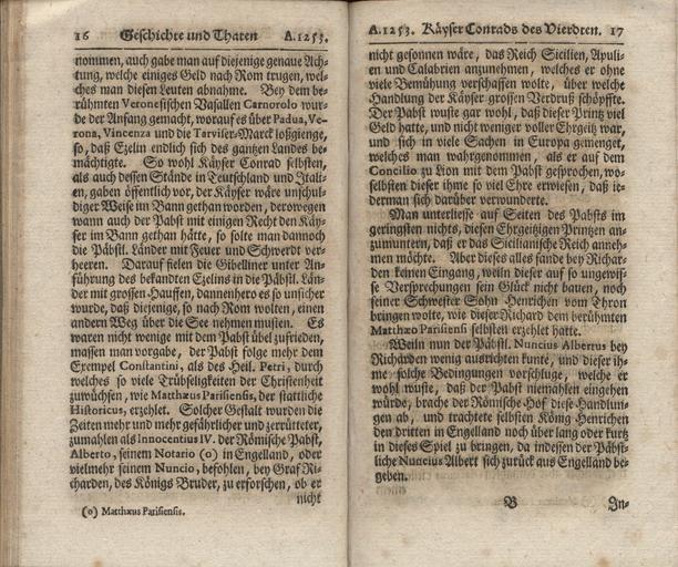 | Keywords: JPGundlingB1 030.jpg JPGundlingB1_ jpg 029 031 This is a scan of the historical document with the title <br/>Geschichte und Thaten Kayser Konrad des Vierten aus dem Geschlecht der Herzoge von Schwaben / wie auch Kayser Wilhelms aus dem Geschlecht der Grafen von Holland/ Aus den Schriften selbiger Zeit und anderen Dokumenten own scan from original book 1719 Jacob Paul von Gundling Jacob_Paul_von_Gundling_B1 PD-old-100 | ||||