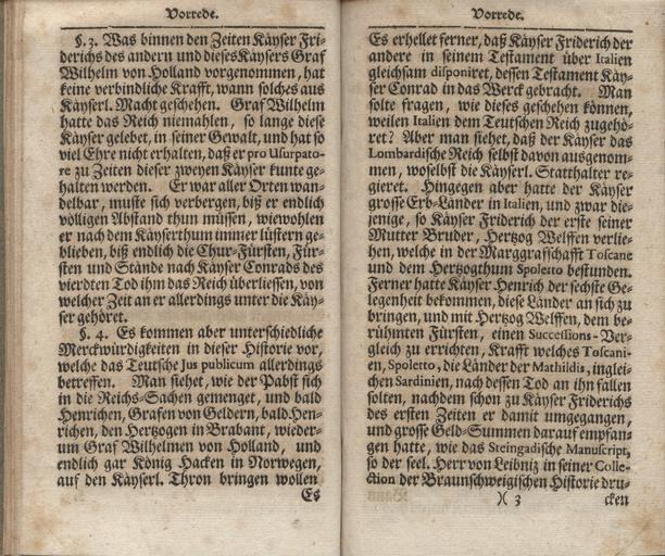 | Keywords: JPGundlingB1 020.jpg JPGundlingB1_ jpg 019 021 This is a scan of the historical document with the title <br/>Geschichte und Thaten Kayser Konrad des Vierten aus dem Geschlecht der Herzoge von Schwaben / wie auch Kayser Wilhelms aus dem Geschlecht der Grafen von Holland/ Aus den Schriften selbiger Zeit und anderen Dokumenten own scan from original book 1719 Jacob Paul von Gundling Jacob_Paul_von_Gundling_B1 PD-old-100 | ||||