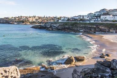 Keywords: daytime outdoor beach ocean shore landscape coast seaside Tamarama beach in Sydney Tamarama beach in Sydney