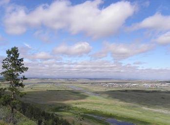 Keywords: Табага в долине Туймада.jpg ru Вид на село овая Табага с сопок own Trevbus 2011-07-09 Cc-zero Tabaga Yakutsk district