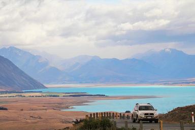 Keywords: south island southisland new zealand newzealand lake tekapo laketekapo mt john mtjohn observatory lakes blue water mountains summer nature outdoor landscape seaside shore coast sky cloud beach loney road loney road