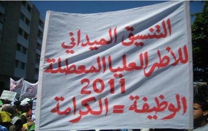 | Keywords: التنسيق الميداني للأطر العليا المعطلة 2011.PNG ar هي حركة إحتجاجية تضم حاملي الشهادات العليا للدكتوراه والماستر ، مهندسي الدولة ، دبلومي الدراسات العليا المعمقة والمتخصصة هدفها الإدماج المباشر و الفوري في مختلف أسلاك الوظيفة العمومية، في إطار التوظيف المباشر لحاملي الشهادات العليا وذلك بناء على ما تنص عليه مختلف النصوص القانونية والمواثيق الدولية التي تكفل هذا الحق التنسيق الميداني للأطر العليا المعطلة 2011 بالمغرب Creator اللجنة الإعلامية لتنسيق الميداني 2011-06-20 Cc-zero Uncategorized 2014 August 31 |