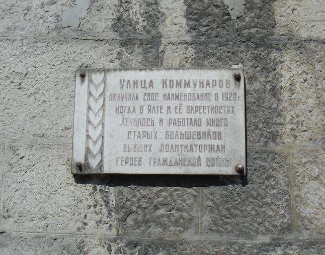 | Keywords: Ялта-Улица Коммунаров-Мемо.jpg ru емо иальная плита на улице Коммуна ов Ялты 2012-05-11 10 29 45 http //ru wikipedia org/wiki/Файл Ялта-Улица_Коммуна ов- емо jpg http //ru wikipedia org/wiki/Участник GennadyL cc-zero Uploaded with UploadWizard Plaques in Yalta |