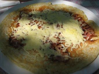 Keywords: europe amsterdam food Cheese and bacon pancake or, in Dutch, kaas en bacon pannekoeken. Cheese and bacon pancake or, in Dutch, kaas en bacon pannekoeken.