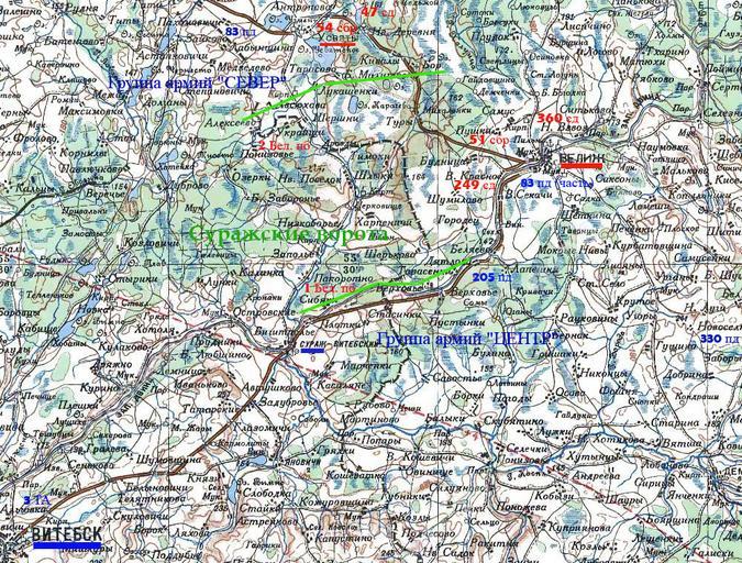 | Keywords: Витебские (Суражские) ворота.jpg ru Схематичное изоб ажение Витебских Су ажских во от на ка те Генштаба РККА от 1936 года PD-Russia вместе с отметками асположения основных частей К асной А мии и Ве махта в фев але 1942 года en Vitebsk Surazh gate's plan with German and Soviet main forces positions during February 1942 Made on the Soviet HQ pre-war map dated 1936 2014-09-16 18 02 02 own KOT-TOK 55 30 cc-zero Uploaded with UploadWizard Military maps | ||||
