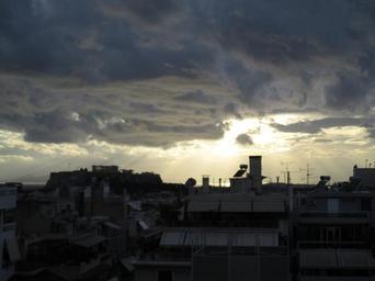 Keywords: L'Acropole, vue depuis la Médiathèque "Octave Merlier", Institut français de Grèce, rue Sina, Athènes.