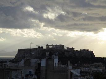 Keywords: L'Acropole, vue depuis la Médiathèque "Octave Merlier", Institut français de Grèce, rue Sina, Athènes.