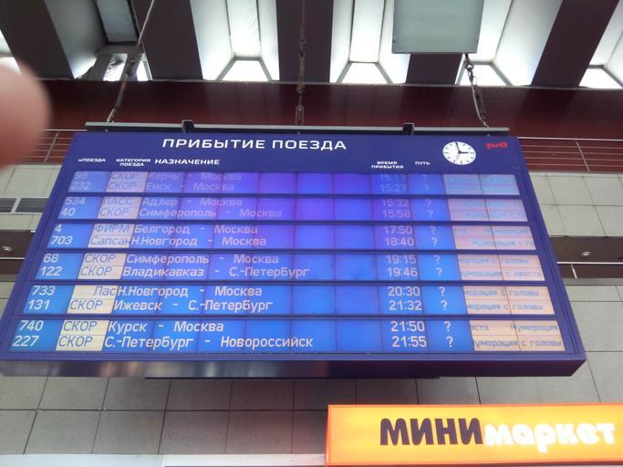 Keywords: Табло прибытия поездов на Курском вокзале.jpg ru Ку ский вокзал осква Табло п ибытия поездов de Kursker Bahnhof Moskau Ankunftstafel own Spacekid 2014-08-11 Information displays at train stations Kursky Rail Terminal Cc-zero