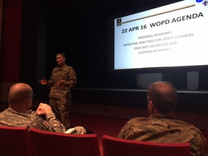 | Keywords: 8th theater sustainment command 8ththeatersustainmentcommand usarpac sustainment professional development indoor The 8th Theater Sustainment Command hosted a Warrant Officer Professional Development forum, discussing career enhancing and development opportunities through education and familiarization of current Army initiatives and to increase understanding of the role Warrant Officers perform at the operational and strategic level while improving effectiveness in the 8th TSC’s mission of setting the theater. The 8th Theater Sustainment Command hosted a Warrant Officer Professional Development forum, discussing career enhancing and development opportunities through education and familiarization of current Army initiatives and to increase understanding of the role Warrant Officers perform at the operational and strategic level while improving effectiveness in the 8th TSC’s mission of setting the theater. |