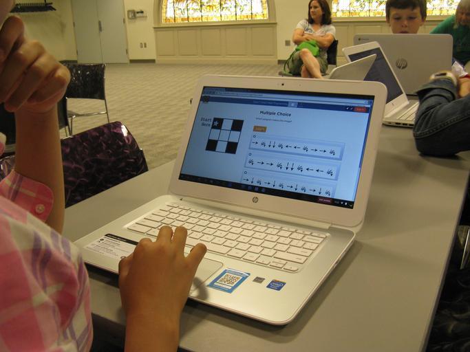 | Keywords: kalamazoo kalamazoo public library kalamazoopubliclibrary code computer skills indoor portable computer electronics screen laptop computer screen display screen monitor KPL Code Camp: Kids and parents work together to solve problems and learn basic computer coding skills, then craft a "binary bracelet" to wear and take home. www.kpl,.gov KPL Code Camp: Kids and parents work together to solve problems and learn basic computer coding skills, then craft a "binary bracelet" to wear and take home. www.kpl,.gov |