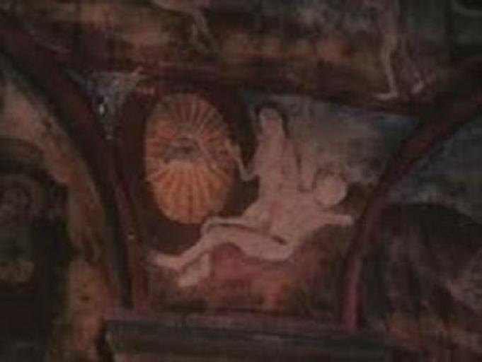 | Keywords: Адам и Ева од Св. Никола Слепче ДХ.jpg mk Ф еска на Адам и Ева во селската ц ква Св икола во деми хиса ско Слепче аф еската се гледа Ева која со п ст му го покажува на Адам Светото Т ојство но тој ја игно и а https //fbcdn-sphotos-c-a akamaihd net/hphotos-ak-ash2/392727_2222507642894_254817939_n jpg author century 17 PD-Macedonia Frescos in the Republic of Macedonia St Nicholas Church Slepče Demir Hisar Frescos of Adam and Eve | ||||