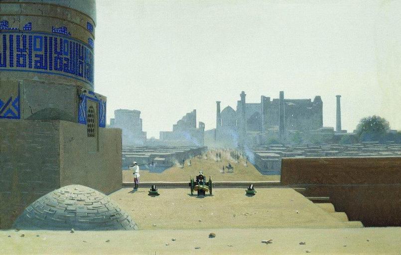 | Keywords: Главная улица в Самарканде с высоты цитадели ранним утром.jpg  Artwork title Главная улица в Сама канде с высоты цитадели  анним ут ом Main Street in Samarkand from the height of the citadel in the early morning http //www picture art-catalog ru/picture php id_picture 2421 1869-1870 Creator Vasily Vereshchagin PD-old-100 Samarkand in art Art works uploaded by Andrew Butko from various sources 1000-1999 px on long side Paintings not categorised by year Paintings by Vasily Vereshchagin Files uploaded by Andrew Butko from various sources 19th century |