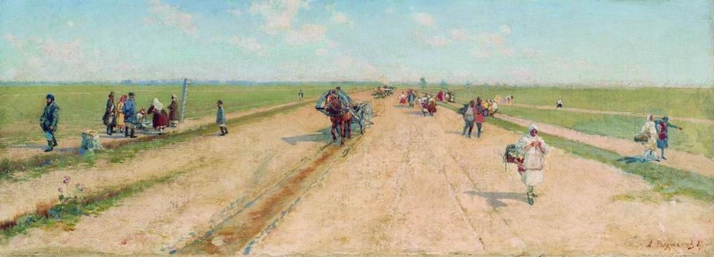 | Keywords: Дорога.jpg До ога 1887 Этюд для неосуществленной ка тины Возв ащение с я ма ки Холст масло 27x50 см Госуда ственная Т етьяковская гале ея осква upload from http //www art-catalog ru/picture php id_picture 11749 1887 Creator Andrei Ryabushkin Museum Tretyakov Gallery credit line Reproduction of a painting that is in the public domain because of its age PD-old-100 Art works uploaded by Andrew Butko from various sources 1000-1999 px on long side 1887 paintings from Russia Merchants and peasants by Andrei Ryabushkin 19th-century landscape paintings in the Tretyakov Gallery Paintings of country roads Files uploaded by Andrew Butko from various sources 19th century |