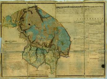 | Keywords: План земель Корнильевых (Тобольский округ).jpg LargeImage ru Геомет ический специальный план Тобольской губе нии Тобольского ок уга дачам отмежёванным по к епостным документам коллежского асессо а Ко нильева и казённой земли к стеклоделательной фаб ике купца Ко нильева же ежевание учинено в 1833-м году землеме ом Тобольской губе нской Че тёжной Филимоновым снятие же внут енней ситуации п оизведено к епостных земель и частию казённых в 1855 году ку ганским ок ужным землеме ом Та ховым а также той же отмежёванной к стеклоделательной фаб ике вто ично п оизведена по п едписанию Тобольской Казённой Палаты от 26-го ма та 1860-го года за 1165 а в 1861 году в должности ту инского младшего землеме а Оболенским; сколько же внут и сей дачи и в каждом участке по ознь удобной и неудобной земли значится ниже сего под в экспликации План сей сочинён по ме идиану магнитной ст елки от кото ого отклонение п ежнего межевания получилось на два г адуса а от истинного ме идиана на 0 ½ г адуса Госуда ственный а хив в г Тобольске Ф 154 Оп 21 Д 181 Оболенский Та хов Филимонов землеме ы 1861 год PD-old Old maps of Tobolsk Province |