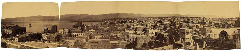 | Keywords: بيروت-القرن ١٩.jpg LargeImage ar بيروت-القرن ١٩ jpg en Beirut - Century 19 jpg Aerial panoramic view of Beirut ar تظهر هذه الصورة التي التقطتها شركة ميزون بونفيس مدينة بيروت، لبنان، في وقت ما في الثلث الأخير من القرن التاسع عشر كانت ميزون بونفيس المغامرة المثمرة بشكل استثنائي للمصور الفرنسي فيلكس بونفيس ١٨٣١-٨٥ وزوجته ماري لايدي كابانس بونفيس ١٨٣٧-١٩١٨ وابنهما أدريان بونفيس ١٨٦١-١٩٢٨ في عام ١٨٦٧ انتقلت عائلة بونفيس إلى بيروت، وعلى مدى العقود الخمسة القادمة، أنتجت شركتهم إحدى أهم مجموعات للصور الفوتوغرافية في العالم عن الشرق الأوسط وكان محل بونفيس معروفا للصور الفوتوغرافية للمناظر الطبيعية والبانورامات ومشاهد من التوراة والصور الإثنوغرافية الوضعية وقد ساعدت فطنة الأسرة التسويقية ووعيها التجاري في جعل صورها معروفة في جميع أنحاء العالم تستخدم الصور البانورامية تقنيات متعددة كي تخلق زاوية رؤية واسعة تتكون هذه الرؤية البانورامية من أربع صور فوتوغرافية جوية وُصلت معا كي تقدمن صورة أكبر مما يمكن الحصول عليه من صورة مفردة en This image by the firm of Maison Bonfils depicts the city of Beirut Lebanon sometime in the last third of the 19th century Maison Bonfils was the extraordinarily prolific venture of the French photographer Félix Bonfils 1831-85 his wife Marie-Lydie Cabanis Bonfils 1837-1918 and their son Adrien Bonfils 1861-1928 The Bonfils moved to Beirut in 1867 and over the next five decades their firm produced one of the world's most important bodies of photographic work about the Middle East Maison Bonfils was known for landscape photographs panoramas biblical scenes and posed ethnographic portraits The family s marketing acumen and commercial sense helped make their photographs known around the world Panoramic photographs employ a variety of techniques to create a wide angle of view This panoramic view is composed of four aerial photographs set together to give the viewer a broader image than would have been practical with a single photograph LOC-image ppmsca 04093 LOC-image ppmsca 04094 LOC-image ppmsca 04095 LOC-image ppmsca 04096 Creator Félix Bonfils ~ 1867 1899 File بيروت tif File Beirut tif - original TIF source <br /> File بيروت القرن ١٩ أسود أبيض jpg File Beirut century 19 black and white jpg - grayscale version with adjusted levels for clarity and detail <br />http //www wdl org/en/item/2459/ http //www wdl org/en/item/2459/ and http //www wdl org/en/item/2475/ http //www wdl org/en/item/2475/ - World Digital Library version of the three frames from the LoC 33 88694303085454 35 51203429698944 region LB hugin PD-old-100 Historical images of Beirut Panoramic views of Beirut Félix Bonfils Images from the World Digital Library |