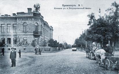 | Keywords: Кременчук Вулиця Київська Держбанк.jpg Postcards of old Kremenchuk <br> Вулиця Київська тепе ішня Пе емоги Де жбанк http //www berloga net berloga net ~ 1900 оки Видавництво книжкового магазину Амчиславського і Блюма other`s Author died more than 70 years ago - public domain PD-old History of Kremenchuk |