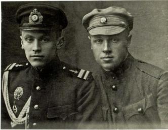 Keywords: Святослав Шрамченко и Сечевой Стрелец.jpg ru Святослав Ш амченко в унифо ме мичмана УДФ с одним из Сечевых Ст ельцов жу нал Ста ый Цейхгауз опубликовано Я Тинченко 1919 PD-old Svyatoslav Shramchenko